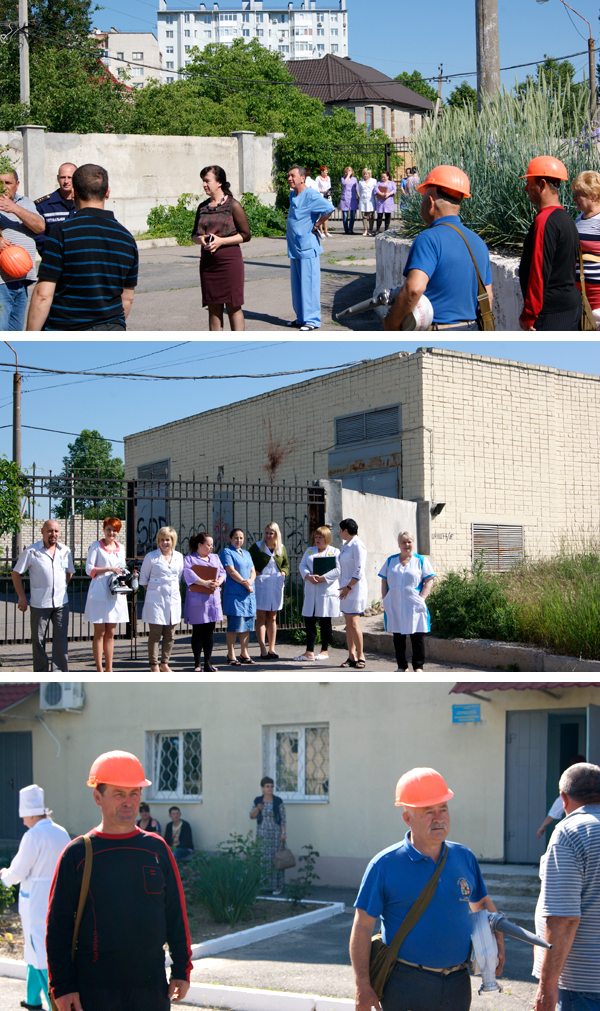 23 травня на території Херсонського обласного онкологічного диспансеру проходили навчання з пожежної безпеки. Всього у заході взяли участь більше 30 працівників з двох структурних підрозділів диспансеру. При проведенні навчання був присутній представник Дніпровського відділу ДСНС Д.О.Малюжець. Рятувальник спостерігав за навчанням та при необхідності давав цінні поради.